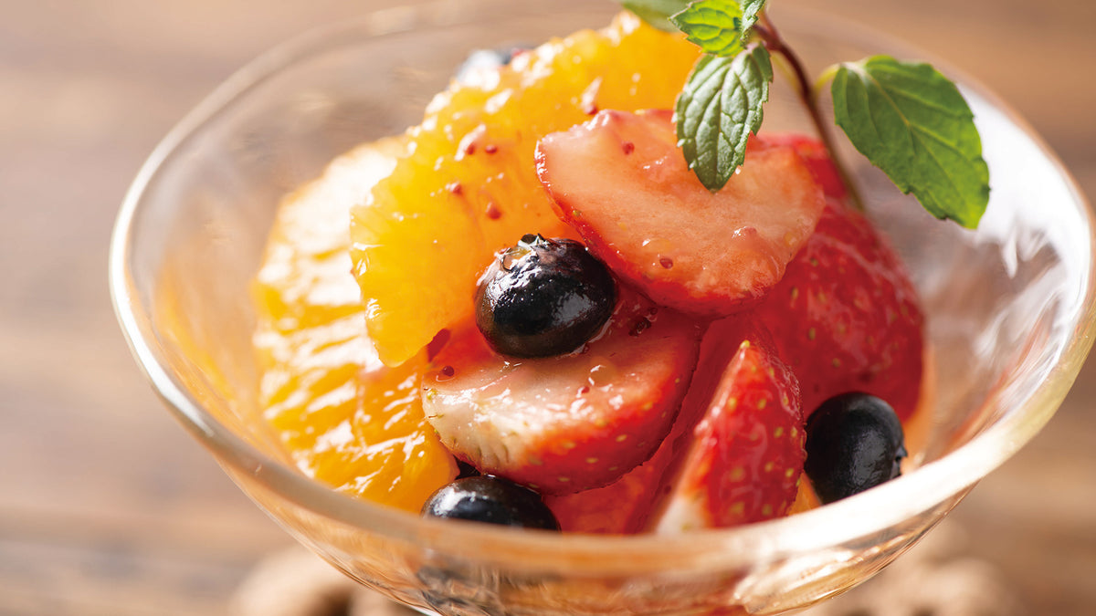 - 1を冷蔵庫で冷やしたら器に盛り付け、ミントなどをトッピングする。