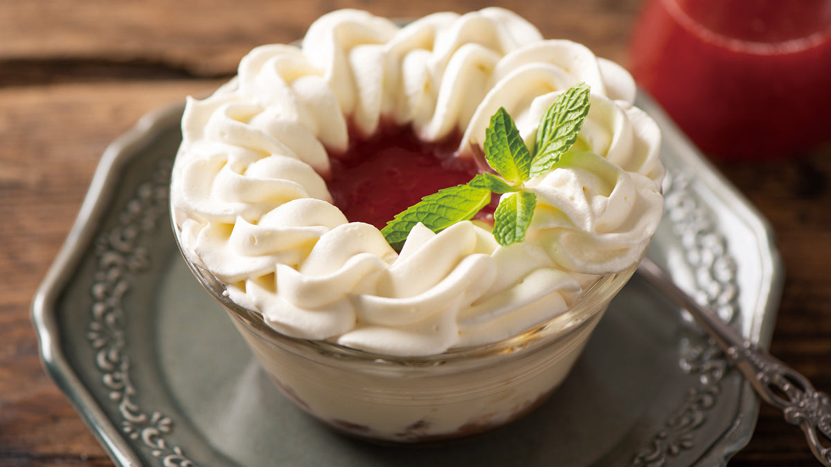 5. いちごミルクの素、お好みでホイップクリームやミントなどをトッピングする。