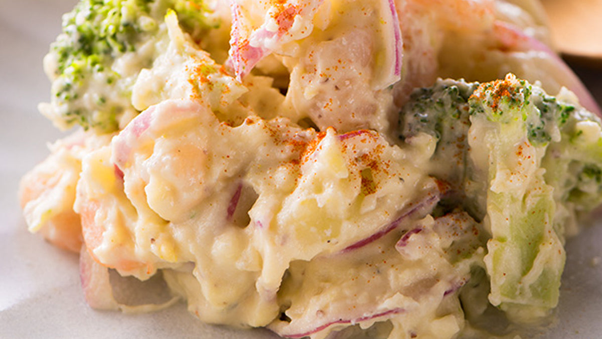 - じゃが芋は皮をむいて茹で、水気を切って荒くつぶす。ブロッコリーも茹でておく。