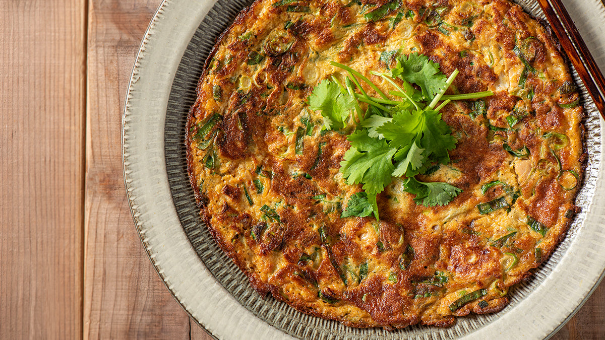 切り干し大根の代わりにいぶりがっこタルタルを混ぜて焼くだけ。いぶりがっこの食感と卵のふわふわ感が楽しめます。