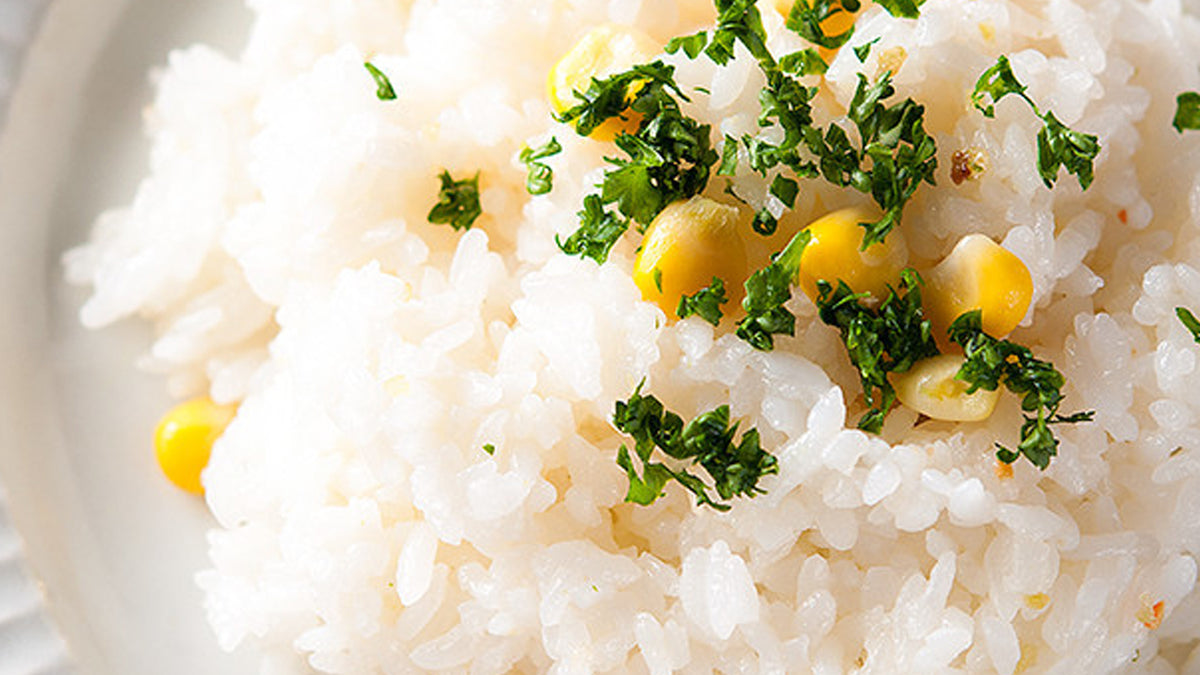 Mix boiled rice with butter, corn, and the contents of 1/2 packet of Vegetable Umami Dashi. Serve on a plate and top with chopped parsley.