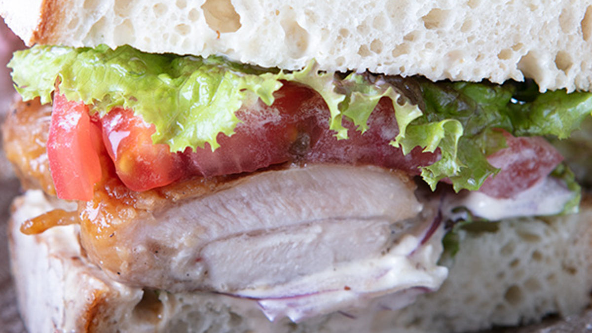 Remove sinews and oil from the chicken thigh, cut open along the grain, even out the thickness, cut in half, and sprinkle with salt, pepper, and flour. Heat oil in a frying pan and brown the chicken thighs, starting from the skin. In a bowl, mix mayonnaise and the contents of 1/3 packet of Vegetable Umami Dashi. Place red onion, chicken, tomato slices, sunny lettuce, and mayonnaise mixture on the bread, in that order, and sandwich the ingredients. While lightly pressing down, cut the sandwich in half and stake with a pick.