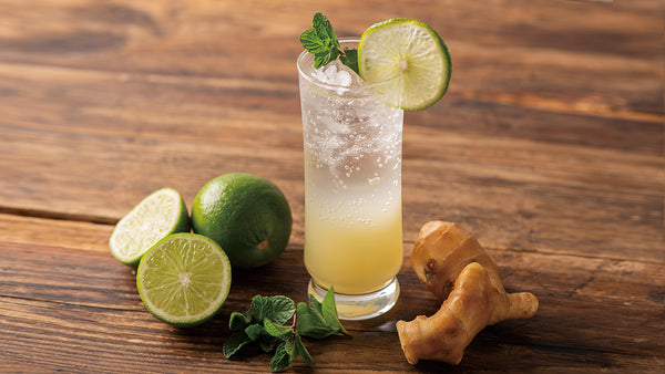 Non-alcohol Yuzu Matcha Refresher made with Kuze Fuku & Sons Yuzu Cocktail Syrup.