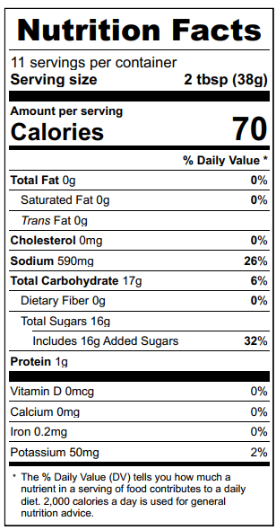 INGREDIENTS: Cane Sugar, Water, Gluten-free Soy Sauce (soybeans, salt, alcohol), Sweet Cooking Rice Wine (sugar, rice, alcohol, salt, lactic acid), Yuzu Juice, Ginger Roots (citric acid, potassium sorbate), Sea Salt, Lemon Juice Concentrate, Corn Starch, Xanthan Gum